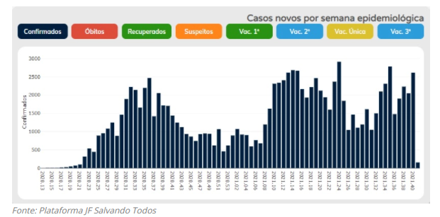 No dia 11 de outubro, os 20 municípios do Entorno somavam 111.476 casos de covid-19 e 2 mil 705 vidas perdidas. Na semana de 3 a 9 de outubro (40ª semana epidemiológica), foram 2.618 novos casos registrados e 39 óbitos, sendo que na semana anterior (26 de setembro a 2 de outubro), os novos casos registrados somavam 2.049 casos registrados e 38 óbitos. Os dados estatísticos são da Plataforma JF.
