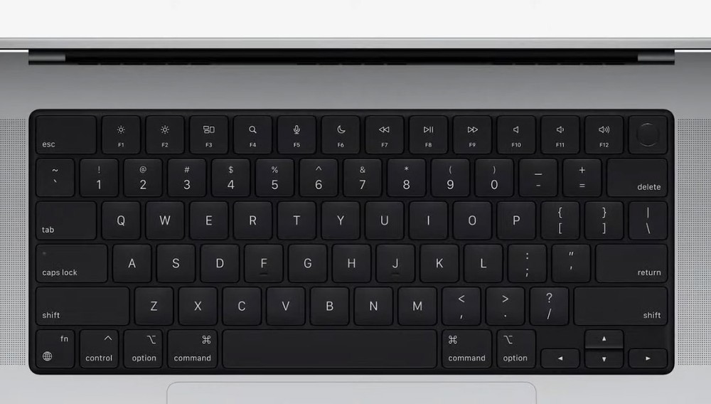O teclado dos novos dispositivos dispensaram a TouchBar. A área, que havia sido lançada pela Apple em 2016, deu lugar novamente às teclas de F1 a F12.