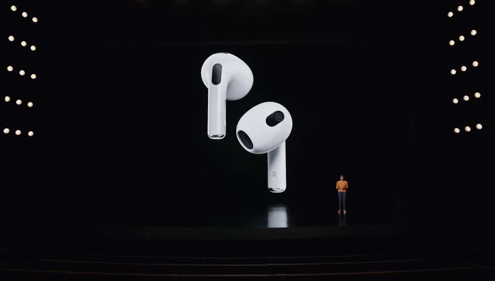 O AirPods 3 ganhou um novo design e passou a oferecer suporte para áudio espacial. A Apple afirma que o acessório oferece mais qualidade de áudio em chamadas do FaceTime.
