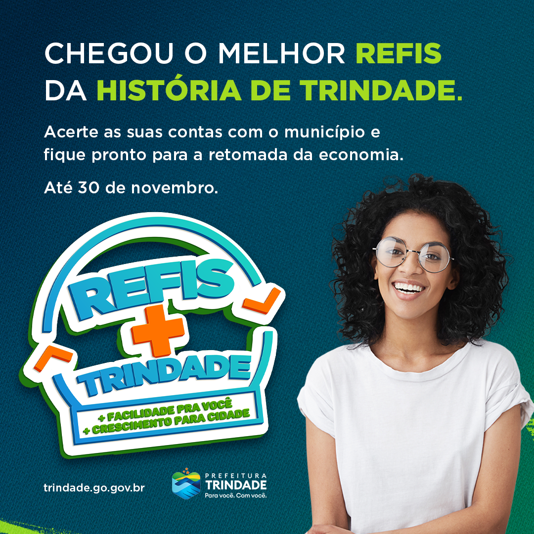 O segundo Programa de Recuperação Fiscal (Refis) do ano está em andamento em Trindade até 30 de novembro. Ele oferece grandes vantagens e descontos sobre multas e juros de impostos e taxas municipais em atraso ou que necessitem de regularização.