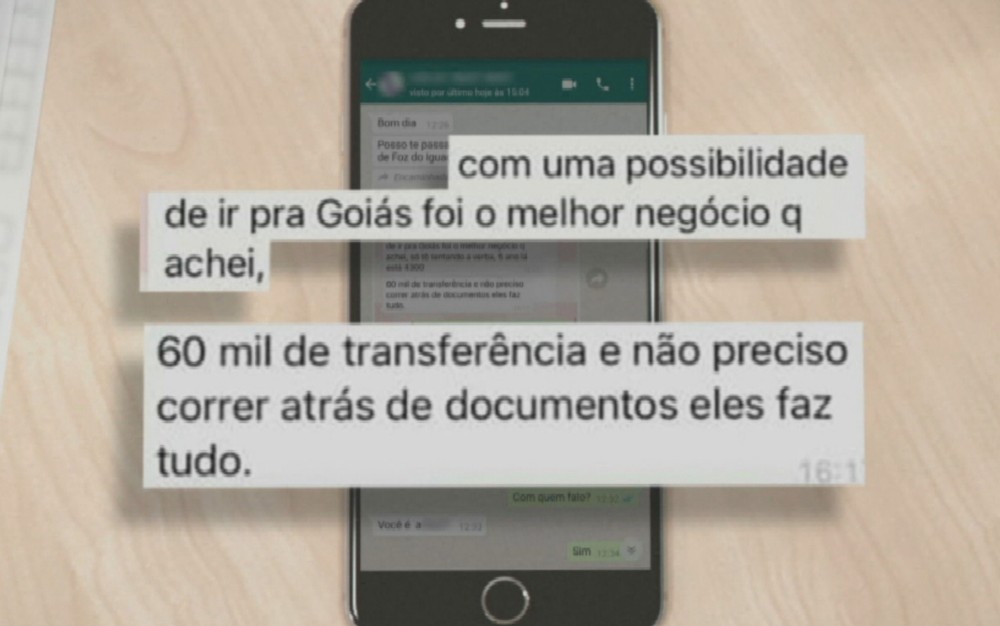 Na mensagem, enviada como denúncia à polícia, uma pessoa diz que está negociando uma transferência para uma faculdade de Goiás. “Tô na mesma, com uma possibilidade de ir para Goiás, foi o melhor negócio que achei, só tô tentando a verba […] 60 mil de transferência e não preciso correr atrás de documentos, eles [organização criminosa] fazem tudo”, diz o print.