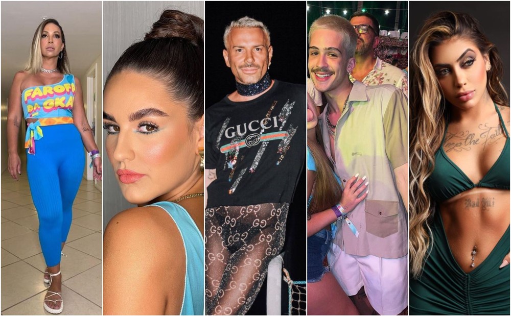 A atriz, youtuber e ex-BBB Viih Tube – que em outubro anunciou o término do namoro de três anos com Bruno Magri – ficou entre os destaques da noite e protagonizou beijos quentes com o também youtuber Isaías Silva, conhecido por interpretar personagens cômicos na internet. Ela foi vista ainda aos beijos com o modelo Lipe Ribeiro.