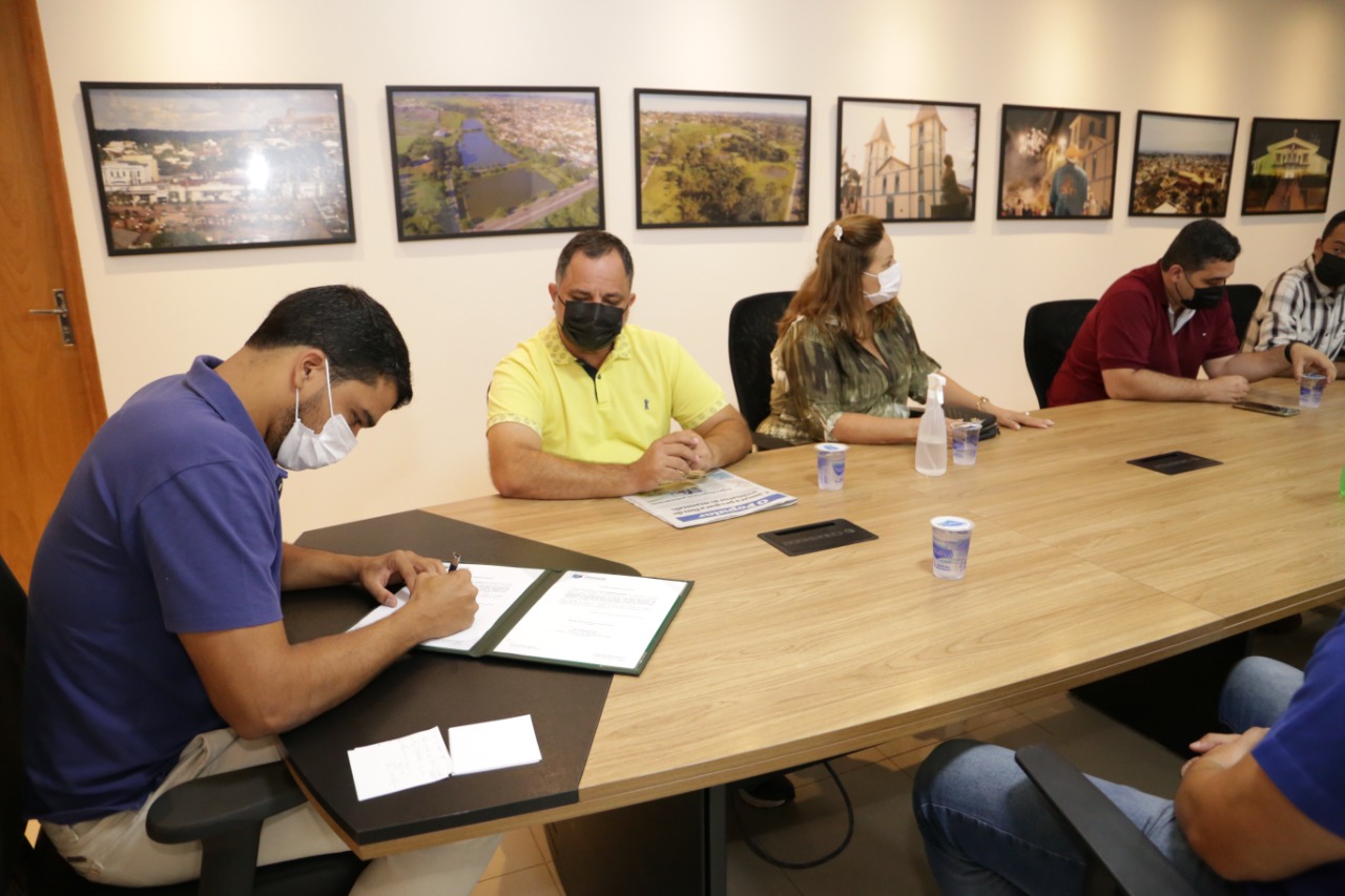 Nesta terça-feira, o prefeito fechou a agenda de 2021 com a assinatura da ordem de serviço, em seu gabinete, ao lado de autoridades municipais, como o presidente da Câmara de Trindade, Wesley Cabeção, os vereadores Baiano do Esporte e Márcia do Edmilson.