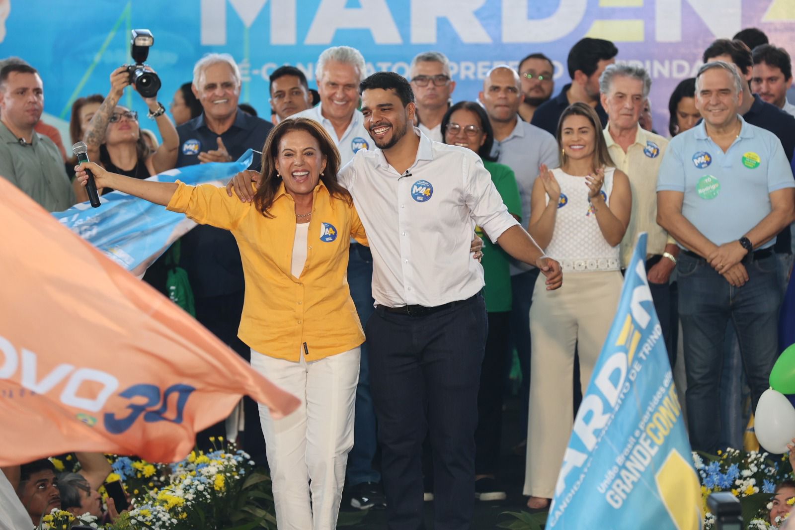 A coligação “Trindade no Caminho Certo” é composta por 10 partidos: União Brasil, MDB, PP, Podemos, Novo, PSD, PRD, PSB, DC e Solidariedade.