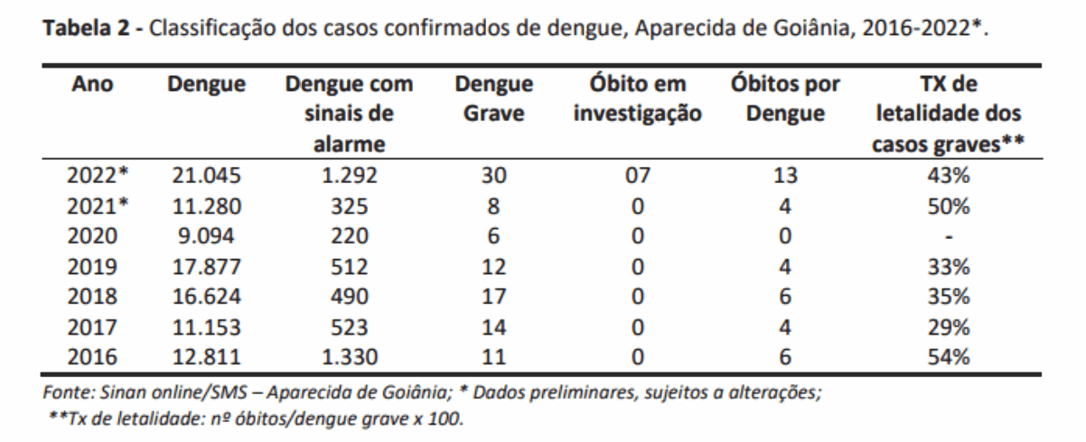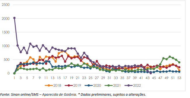 No entanto, é bom lembrar que Aparecida de Goiânia não é um caso isolado. O Estado de Goiás é um dos mais acometidos pela doença em 2022, assim como a capital.