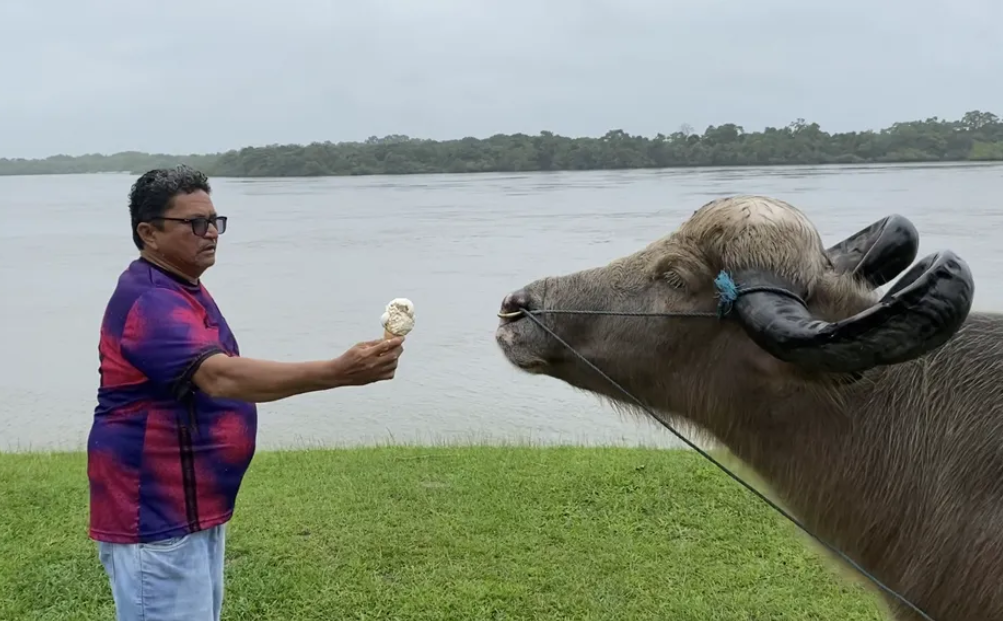Um proprietário de uma sorveteria na Ilha do Marajó resolveu adotar um búfalo de cerca de 800 quilos como “animal de estimação” ou “filho”, como Joniel Melo prefere dizer. O morador de Soure cria há nove anos um búfalo da raça mediterrâneo que se chama “Alemão”.