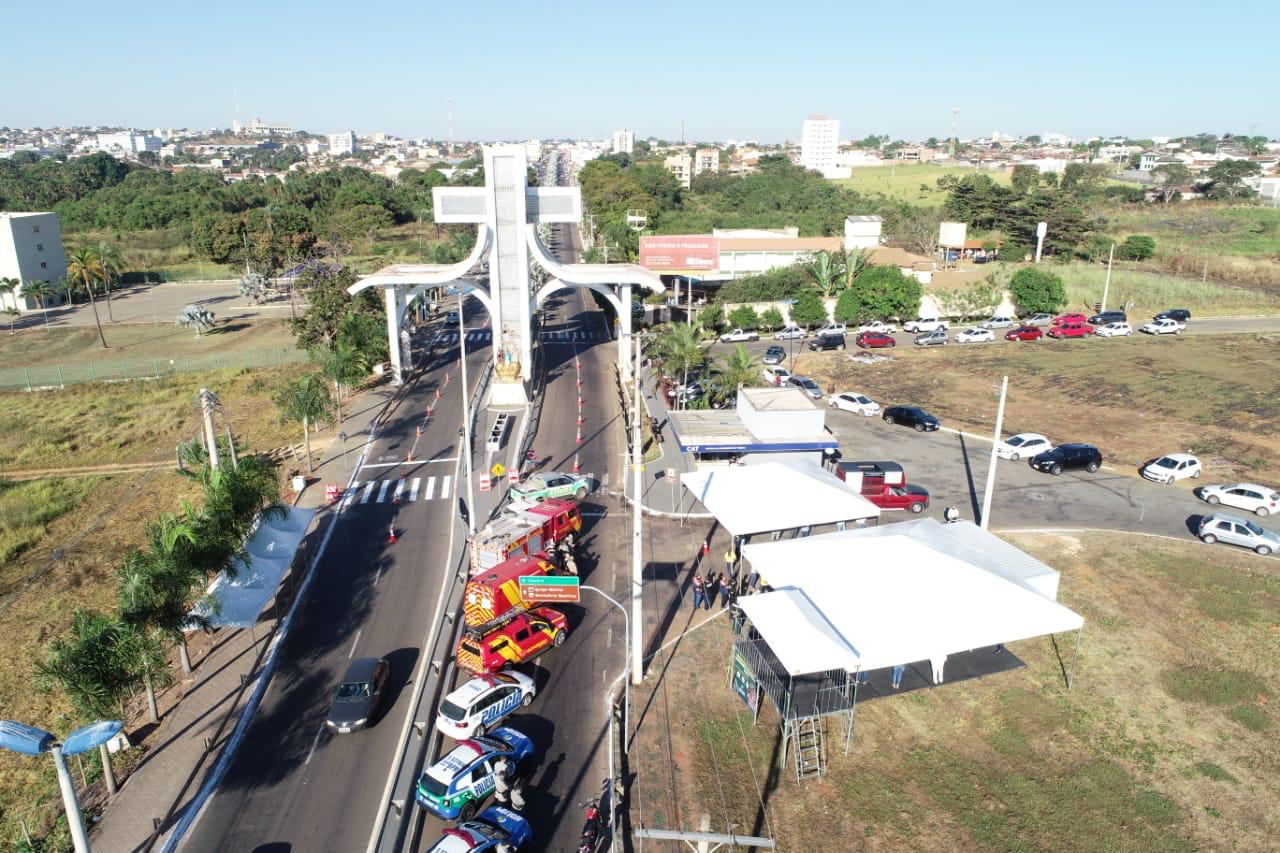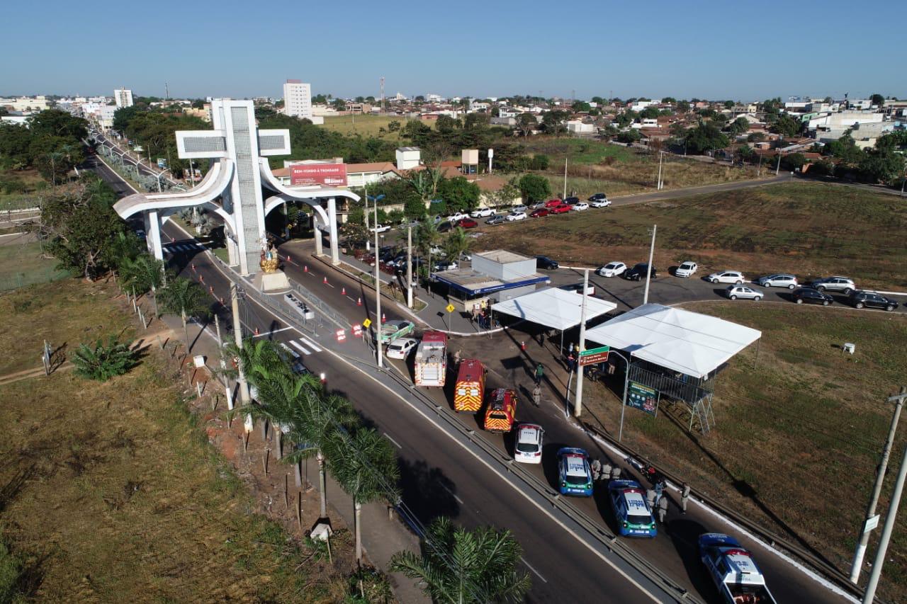 A entrada em Trindade pela GO-060, onde fica o Portal da Fé, foi fechada para veículos a partir das 8h de hoje. Na rodovia há um bloqueio policial onde os condutores estão sendo orientados a não entrarem na cidade.