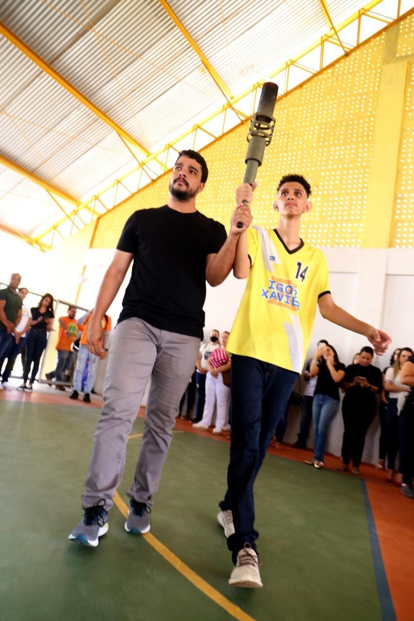Ele recebeu a tocha olímpica junto com autoridades, na presença de centenas de estudantes de Trindade e de cidades próximas. O prefeito lembrou, com entusiasmo, quando competiu nos jogos na adolescência e estimulou as delegações presentes: “Já disputei, venci e guardo minha medalha até hoje. Valorizem isso”, aconselhou.