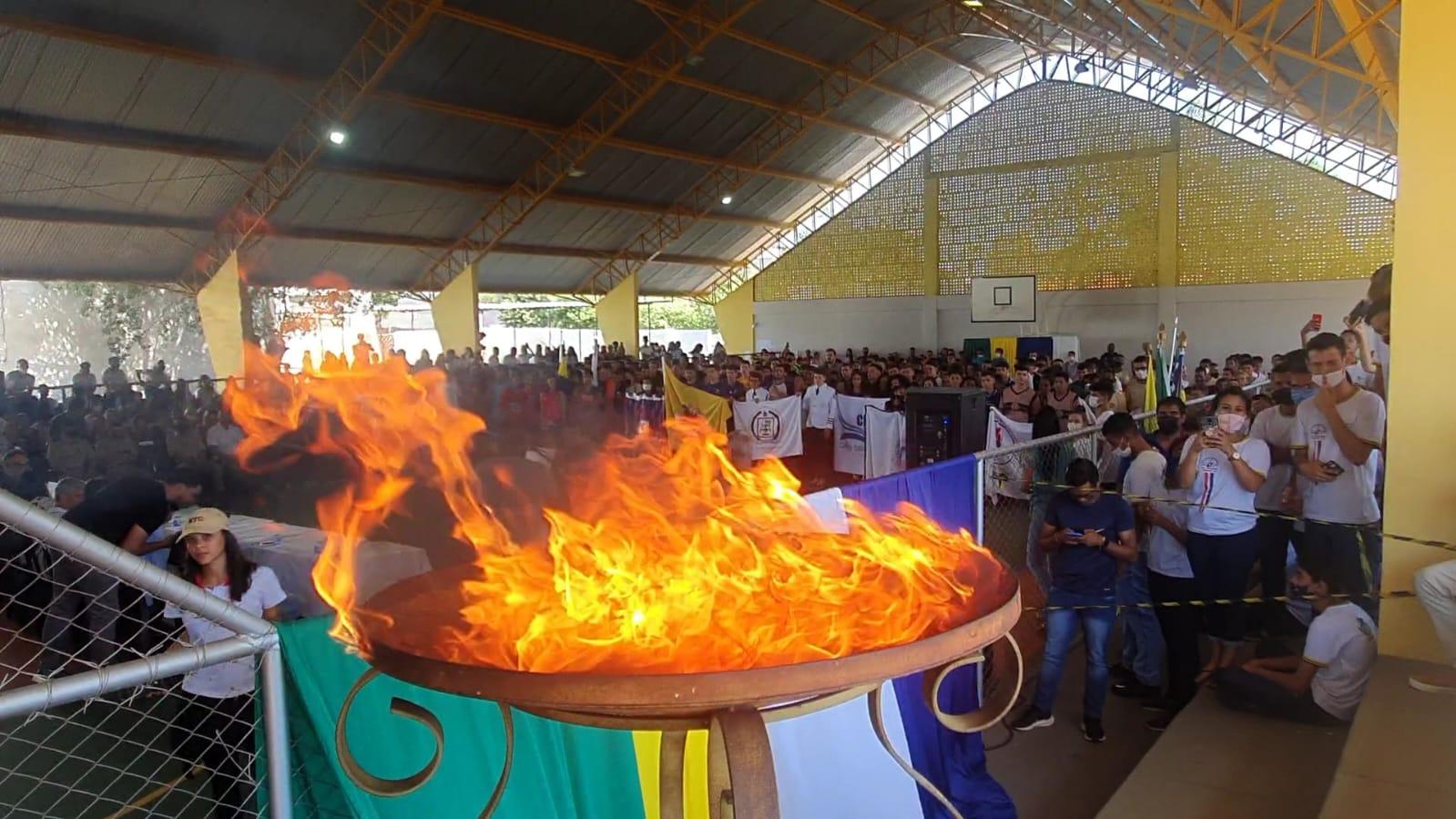 Tocha olímpica foi entregue ao prefeito Marden Júnior por estudantes que se revezaram por 13 escolas de Trindade, dando início à 12ª edição dos Jogos Estudantis de Goiás. Delegações se encontraram no Colégio Estadual Padre Pelágio, local da abertura. “Já disputei, venci e guardo minha medalha até hoje. Valorizem isso”, aconselhou o prefeito aos atletas presentes