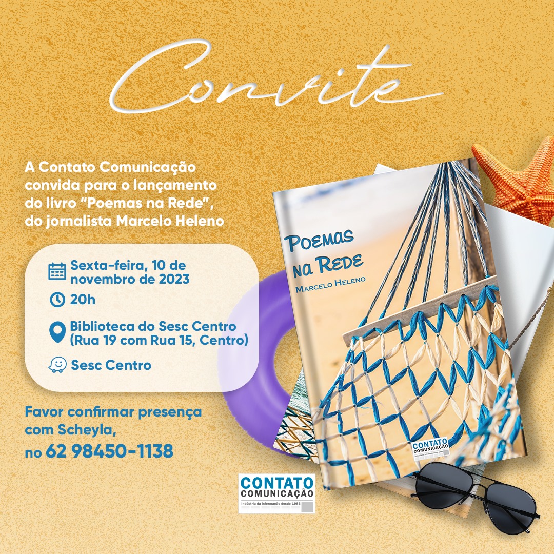 O poeta e jornalista Marcelo Heleno lança, no próximo dia 10, “Poemas na Rede”. Este é o sexto livro do autor, o quinto de poesia, publicado 30 anos depois de “Diabete”, o último título, lançado em 1993. Marcelo é jornalista profissional, tendo atuado mais fortemente no rádio, em especial em coberturas políticas nas últimas três décadas. Tem cinco livros editados, sendo os quatro primeiros de poesia, e o outro um registro dos 30 primeiros anos de atuação do Sicredi, na Região Centro-Oeste. O lançamento acontece na Biblioteca do Sesc, no Centro de Goiânia. A obra é mais uma produção da Contato Comunicação.