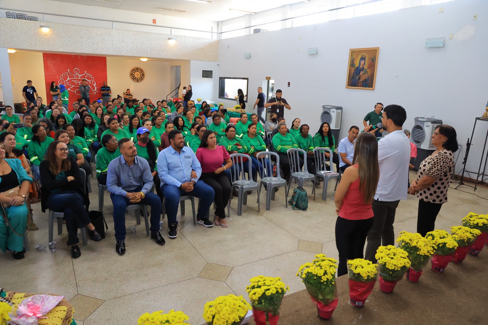 Evento foi organizado pela madrinha da educação, Rouane Azevedo, para contemplar colaboradoras das secretarias municipais de Infraestrutura e Serviços Públicos, e Mobi, empresa terceirizada responsável pela limpeza das ruas, com café da manhã e sorteio de brindes. “Quero aproveitar esse momento para parabenizar cada mãe do nosso município”, destaca prefeito