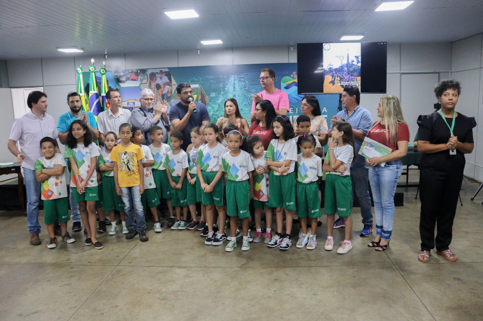 O evento contou com as presenças de secretários municipais, madrinha da educação, Rouane Azevedo, vereadores Maurinho de Paula, Pastor Zeca e Marco Ferreira.