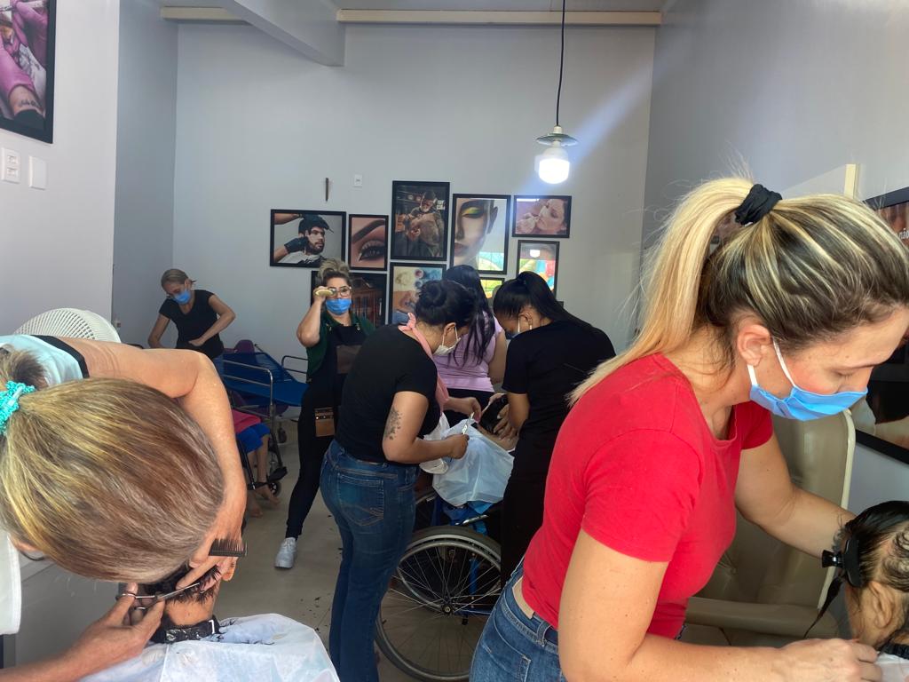Houve cortes de cabelo realizados pelas alunas com a supervisão da Professora Fabiane. A atividade serviu para o aperfeiçoamento das alunas e levou clima de descontração, alegria e emoção para os internos que se viram embelezados com a ação, plena também de carinho e dedicação.