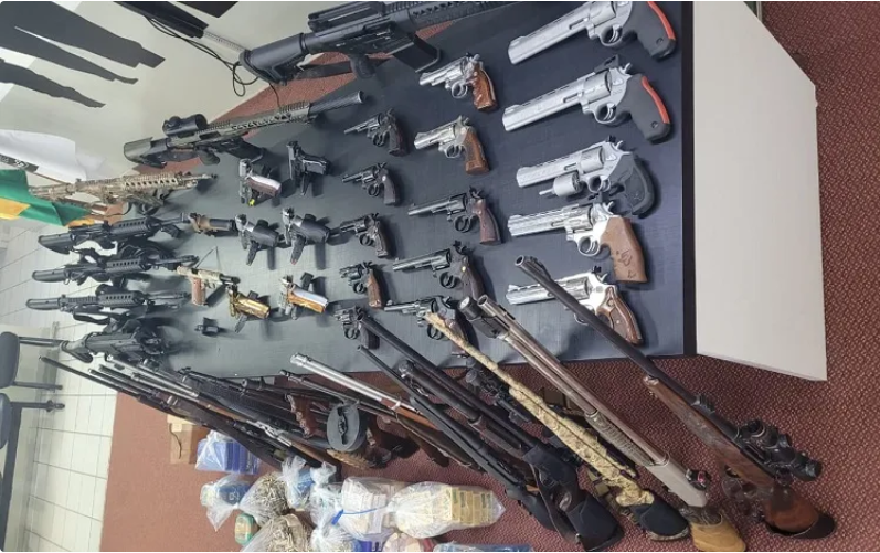 Nesta segunda-feira (27), a DECON apreendeu 46 armas de fogo, além de munições e insumos para produção de munições. As armas estavam em lojas de armamentos e eram registradas em nome de uma pessoa física portadora de CAC (Certificado de Registro de Colecionador, Atirador Desportivo e Caçador). O arsenal é avaliado em mais de R$ 700 mil.