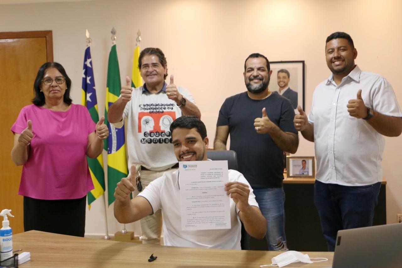 Marden Júnior fez questão de assinar e divulgar o decreto ao lado do secretário Municipal de Saúde de Trindade, Rogério Taveira, do presidente do Gabinete de Operações e Emergência e Saúde (GOE), Cristiano Galindo, do diretor de Vigilância em Saúde, Leonardo Izidório e da Primeira-Dama, dona Dorinha, mãe do prefeito.