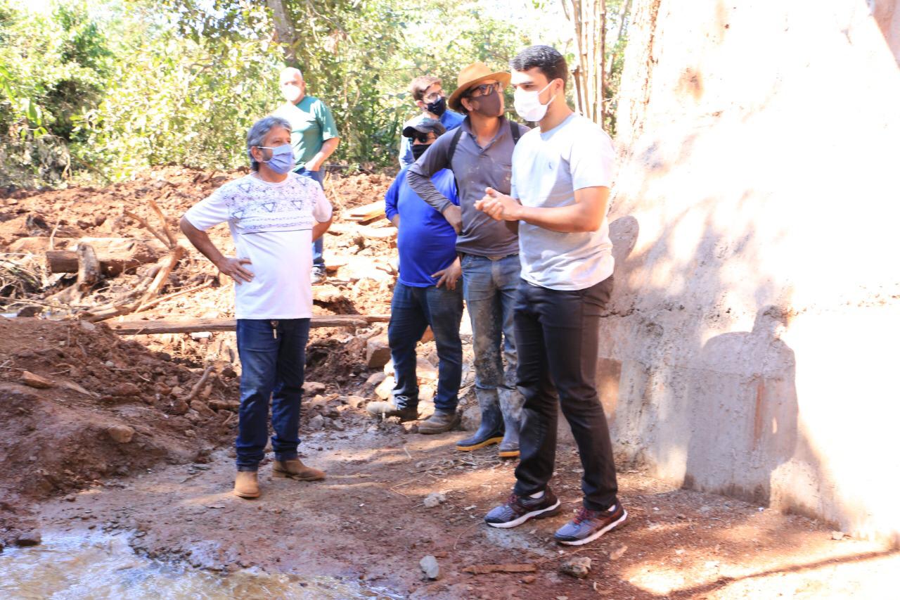 O prefeito Marden Júnior vistoriou, nesta sexta-feira (25/06), as obras de construção da nova ponte sobre o Córrego Canta Sapo, na Região do Bugre, que será concluída em julho. A estrutura é essencial para pequenos produtores que enfrentam dificuldades para escoar a produção.