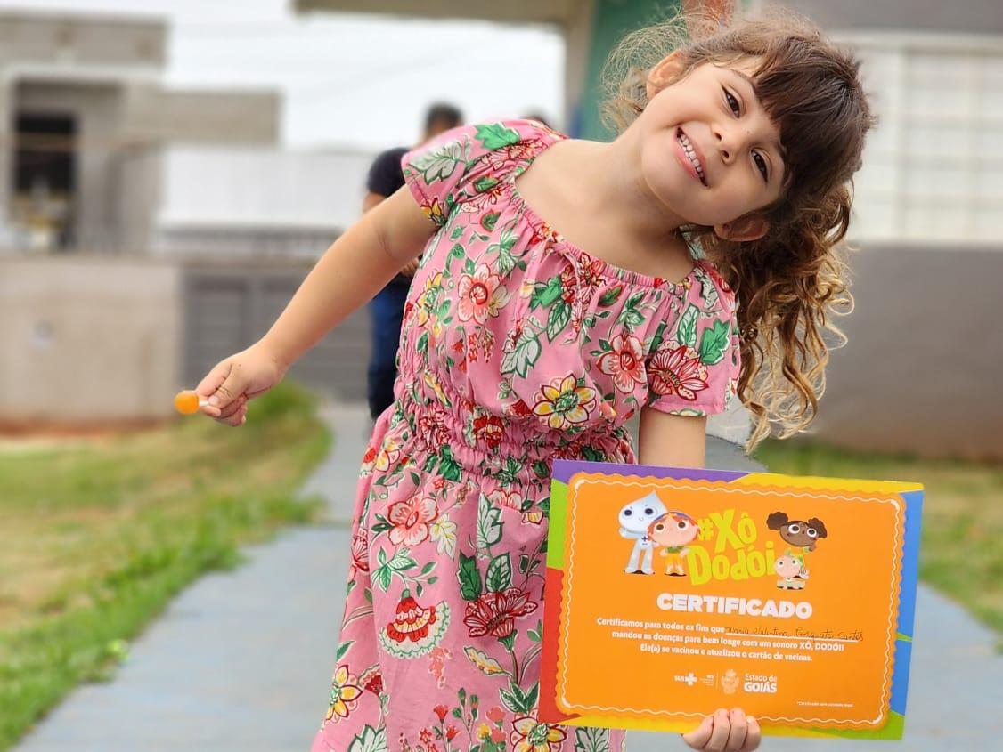 As crianças que foram vacinadas receberam um certificado “Xô Dodói” informando o nome da criança que “mandou a doença para bem longe”.