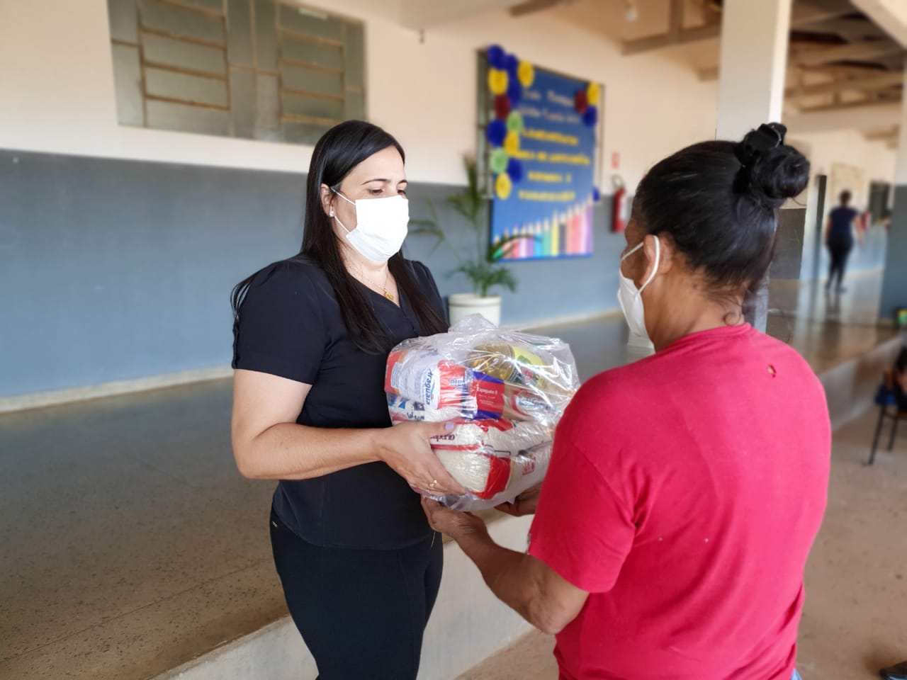 “A gente vê, ao entregar esse kit, o quanto ele é importante e tem ajudado a população e a comunidade carente”, diz a diretora da escola Tabelião Augusto Costa, Tatiane Souza.
