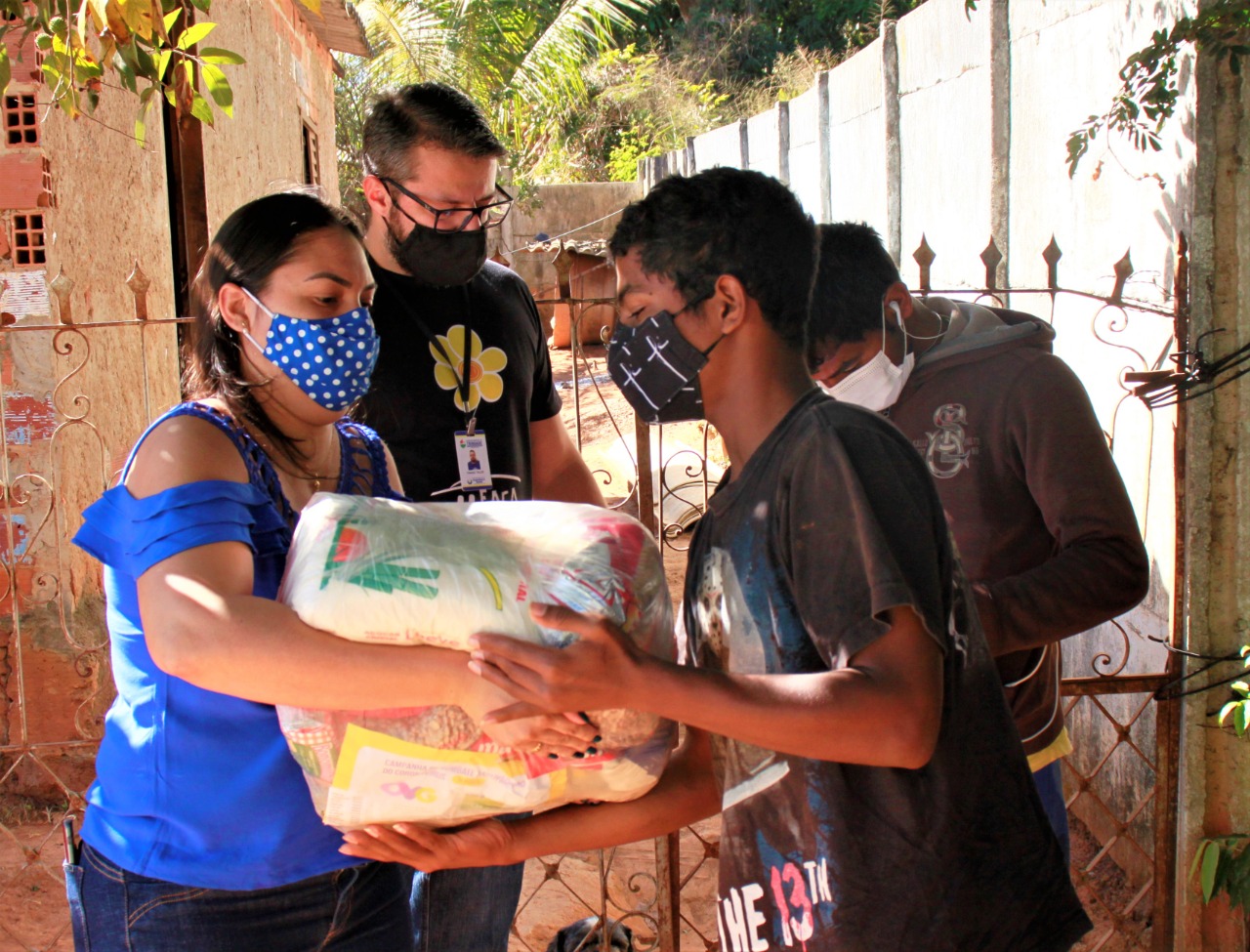 As equipes percorreram as ruas dos setores Novo Paraíso, Jardim das Oliveiras, Jardim Salvador e Jardim Novo Horizonte para entregar cestas básicas diretamente nas casas dessas famílias em situação de vulnerabilidade e, assim, facilitar o acesso ao benefício.