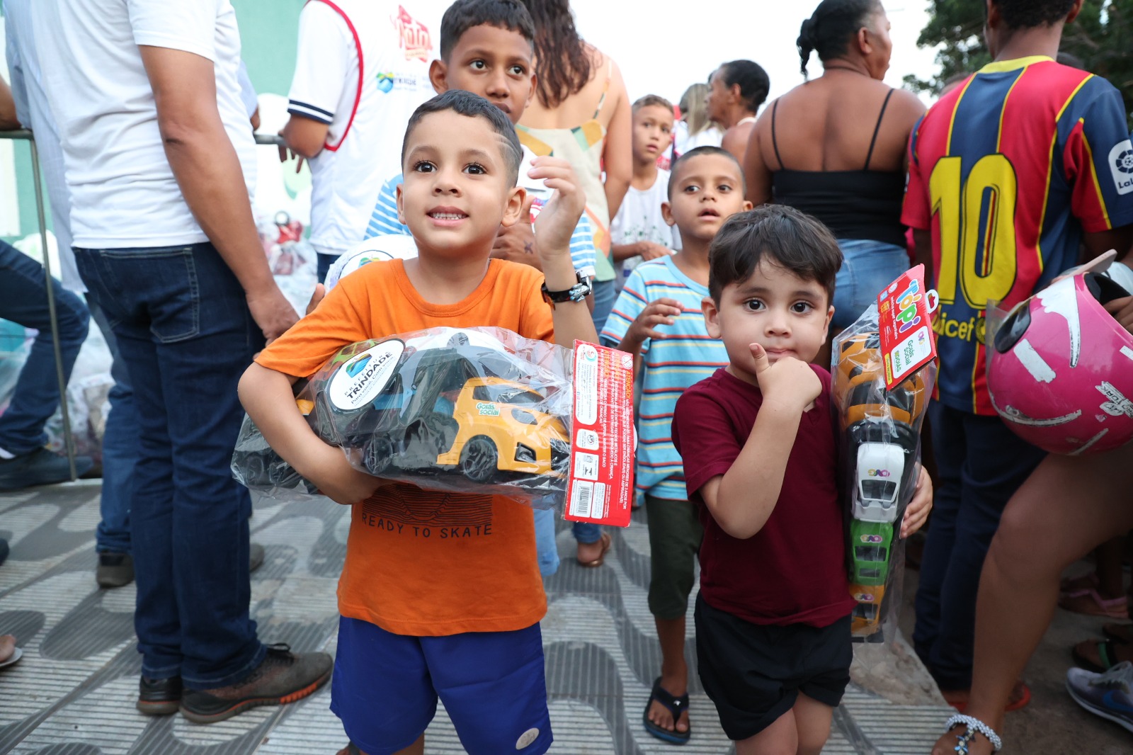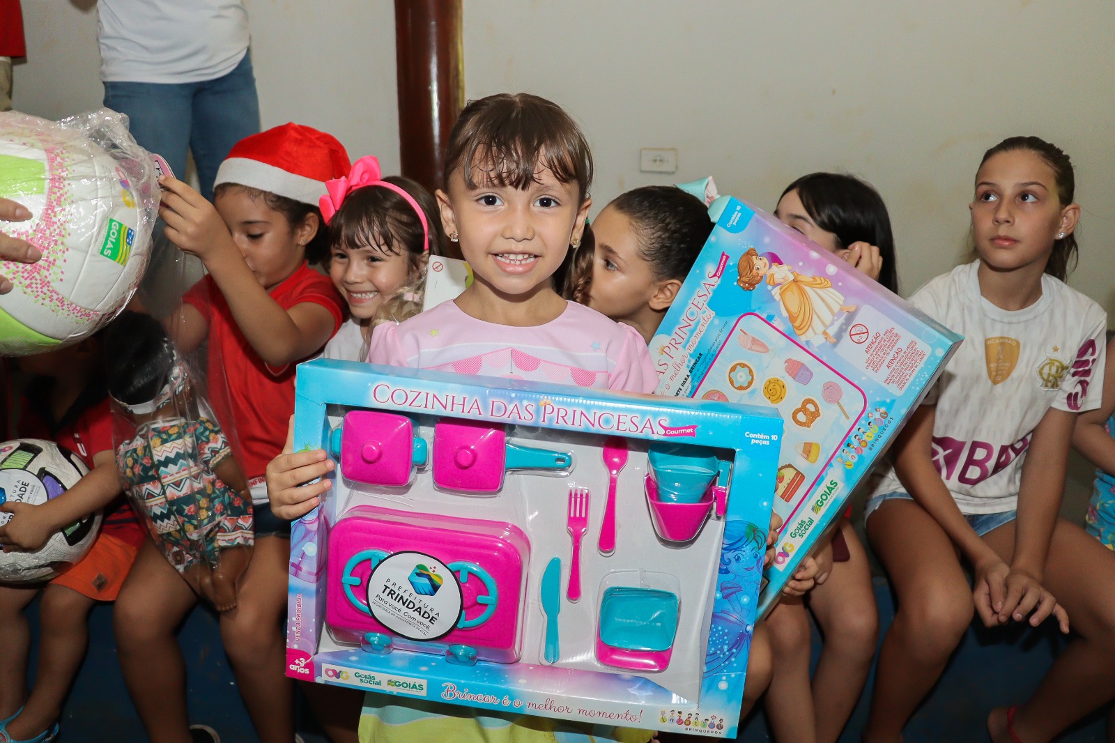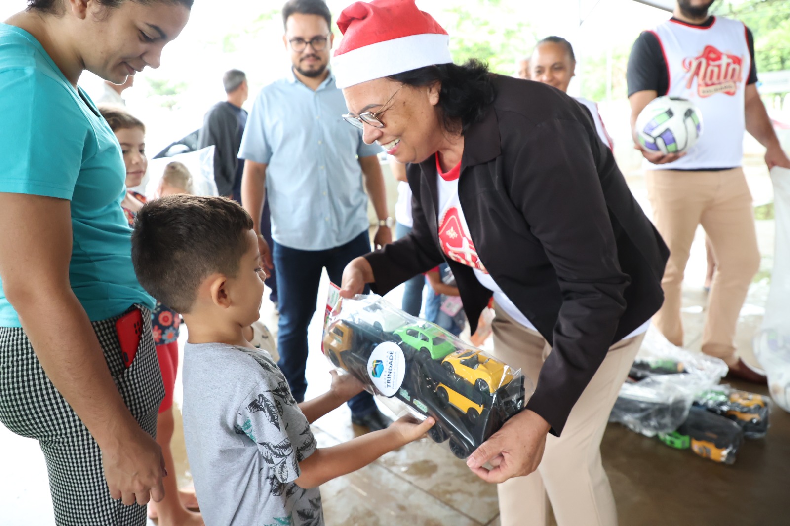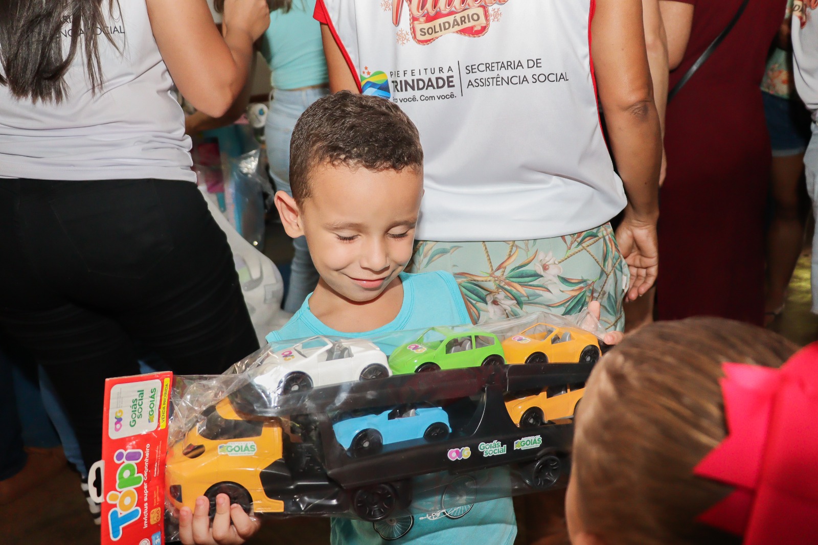 A Prefeitura de Trindade realizou a 3ª edição do Natal Solidário com a entrega de brinquedos às crianças em diferentes bairros, nos distritos de Cedro, Santa Maria e nas entidades beneficentes do município. Este ano foram destinados mais de 20 mil presentes que proporcionaram muita alegria a filhos e pais.