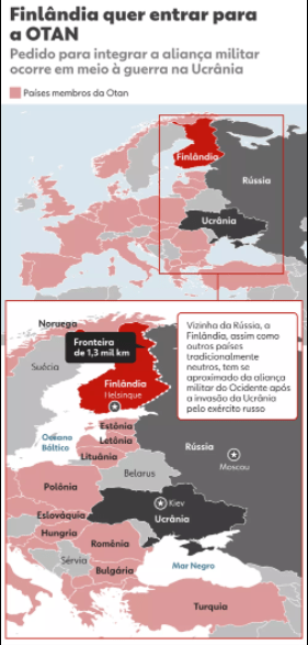 A mudança de rumo, considerada o principal movimento da geopolítica mundial em decorrência da invasão da Rússia à Ucrânia, é considerada uma grande ameaça pela Rússia, que alega que a Otan vem buscando se aproximar de seu território nos últimos anos.