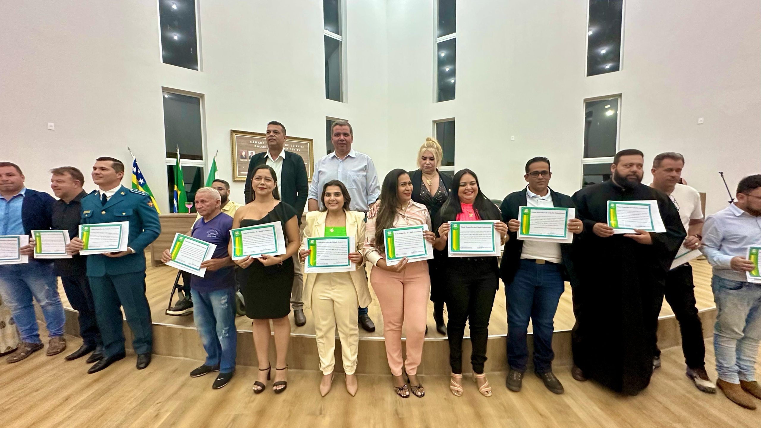 A vereadora Sabrina Garcez recebeu, na noite desta sexta-feira (24), o Título de Cidadã Goianirense. A homenagem foi concedida pela Câmara Municipal de Goianira, município localizado a 22 quilômetros da capital.