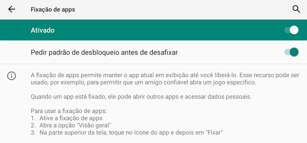 Feita essa ressalva, existe um recurso que pode ser útil: a “fixação de apps” (Android) ou “Acesso Guiado” (iPhone). É um recurso que fixa um aplicativo na tela e volta para a tela de bloqueio caso haja uma tentativa de abrir outro app. Você pode usar essa função para travar o GPS na tela, por exemplo, sem que o smartphone fique totalmente desbloqueado.