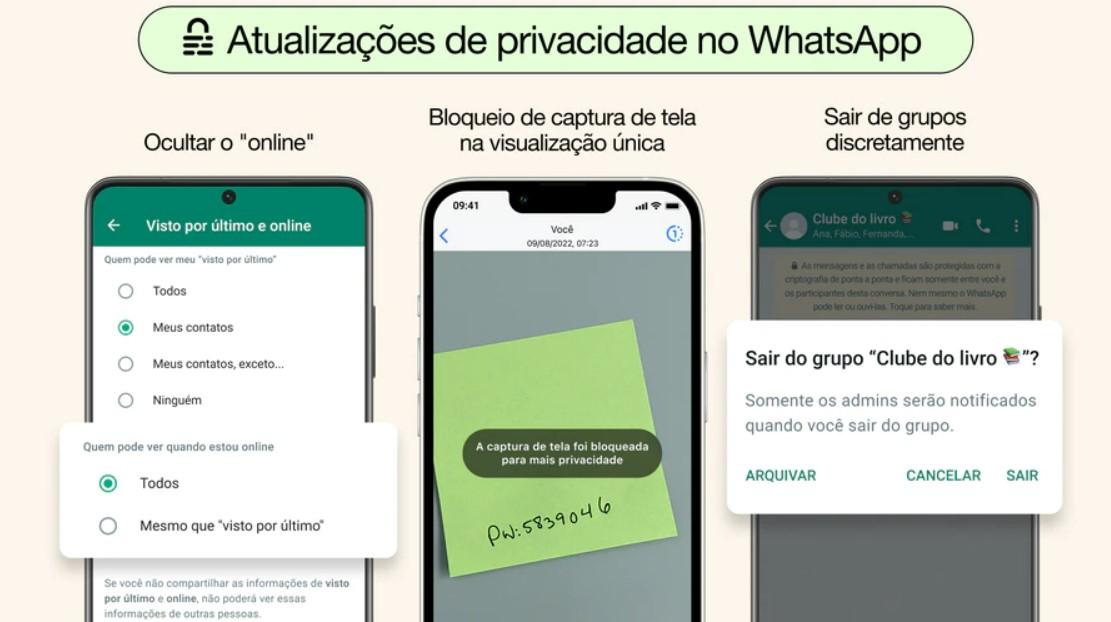 O WhatsApp lança nesta terça-feira, 9, dois novos recursos aguardados pelos usuários do aplicativo de mensagens: saída discreta de grupos e esconder o status de online das conversas.